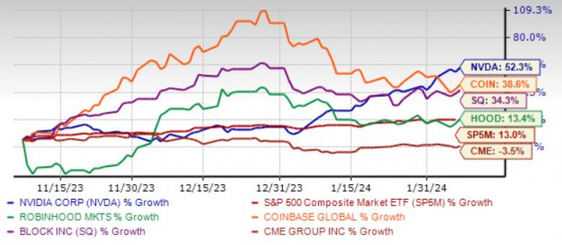 Coinbase Global has an expected earnings growth rate of 49.1% for the current year. The Zacks Consensus Estimate for current-year earnings has improved 36.4% over the last 30 days. COIN currently carries a Zacks Rank #3 (Hold).