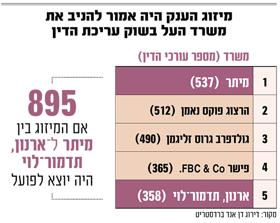 לפי דירוג דן אנד ברדסטריט, משרד מיתר הוא כיום הגדול בישראל, עם כ-540 עורכי דין, ומשרד ארנון מדורג בחמישייה הראשונה עם יותר מ-350 עורכי דין.