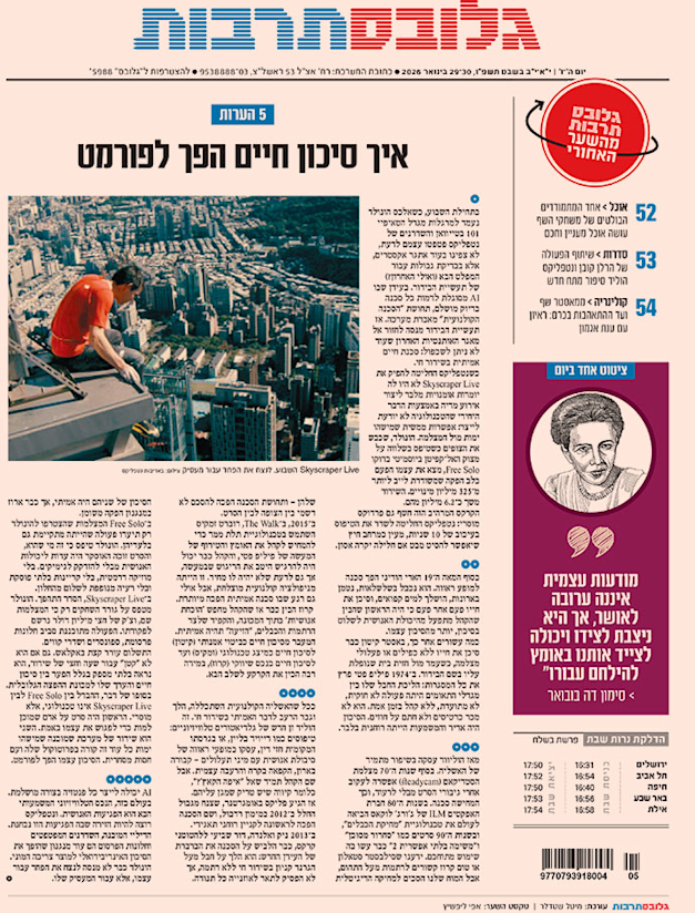 בתחילת השבוע, כשאלכס הונולד נעמד למרגלות מגדל הטאיפיי 101 בטייוואן והשדרנים של נטפליקס פטפטו עצמם לדעת, לא צפינו בעוד אתגר אקסטרים, אלא בבדיקת גבולות עבור המפלט הבא (ואולי האחרון?) של תעשיית הבידור. בעידן שבו AI מסוגלת לדמות כל סכנה בדיוק מושלם, תחושת "הסכנה הקולנועית" מאבדת מערכה. אז תעשיית הבידור מנסה לחזור אל מאגר האותנטיות האחרון שעוד לא ניתן לשכפול: סכנת חיים אמיתית בשידור חי.
