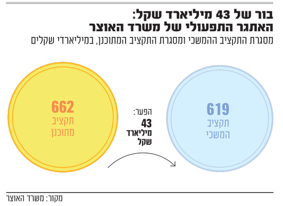 באוצר כבר מתורגלים בעבודה ללא תקציב מאושר מהשנים האחרונות, אבל הפעם הפער האדיר בין מסגרת ההוצאה הזמנית לבין המתוכננת - כ־43 מיליארד שקל - עלול להציב אתגר תפעולי ממשי לאורך זמן. בפרט, שאין כל ודאות שהתקציב הרשמי בכלל יאושר בכנסת, על רקע משבר חוק הגיוס לחרדים.