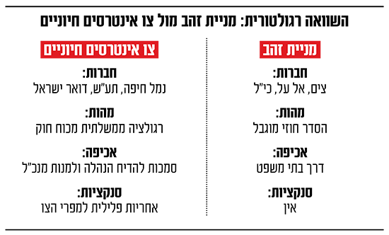 לעומת זאת, "צו אינטרסים חיוניים" - שהוחל על גופים שהופרטו בשנים מאוחרות יותר, כדוגמת נמל חיפה - מהווה כלי רגולטורי עוצמתי בהרבה. הצו מעניק לשרים סמכויות רחבות ומיידיות, ומטיל אחריות פלילית על הפרתו. בתרחיש של פגיעה באינטרס הלאומי, הצו אף מאפשר למדינה "להשתלט" דה־פקטו על ניהול החברה ולמנות מנכ"ל מטעמה, צעד שמשנה לחלוטין את מאזן הכוחות מול הרוכש הפוטנציאלי.