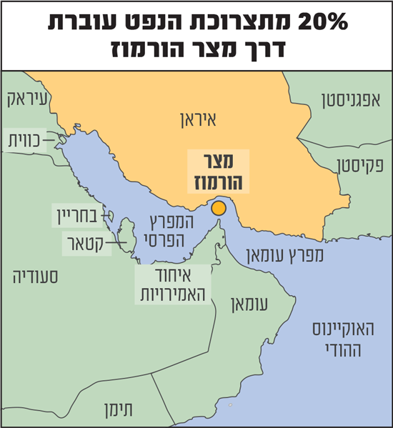 משמרות המהפכה האיראניות שלפו בלילה בין שני לשלישי את הנשק הגיאו-אסטרטגי החזק ביותר שברשותם - וסגרו את מצר הורמוז, צוואר הבקבוק שדרכו זורמים 20% מהנפט והגז של כדור הארץ. עם פרוץ המלחמה, מכליות נפט כבר הותקפו באזור, ומעברי הספינות קרסו ביותר מ-80% - רובן ממהרות לצאת מהמפרץ הפרסי לפני שיהיה מאוחר מדי.