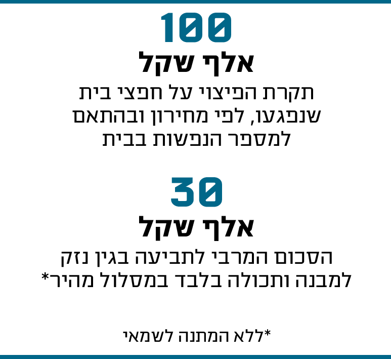 תקרת הפיצוי על חפצי בית שנפגעו, לפי מחירון ובהתאם למספר הנפשות בבית