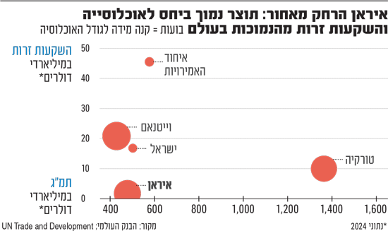 המחשה נוספת נוגעת להשקעות הזרות הישירות באיראן שב־2024 עמדו על 1.5 מיליארד דולר בלבד. זאת בשעה שטורקיה משכה כ־13 מיליארד דולר, איחוד האמירויות יותר מ־30 מיליארד דולר, ווייטנאם יותר מ־36 מיליארד דולר.