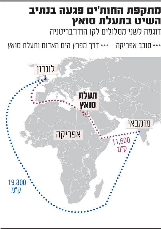 ובכל זאת, לאיומים יש משמעות. ב-2023 עברו יותר מ-20 אלף ספינות במצר, ההכרחי כאמור למי שחוצה את סואץ ורוצה להמשיך לאוקיינוס ההודי. אך לאחר שהחליטו לחסום את המצר בעזרת מתקפות ספורדיות על ספינות, שהקפיצו את מחירי הביטוח (ממש כפי שאיראן פועלת כעת בהורמוז), התנועה נעצרה.