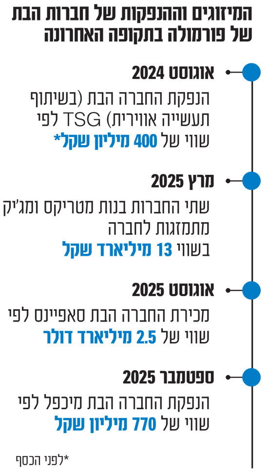 בעקבות כך פורמולה רשמה בשנה שעברה רווח עצום של 2 מיליארד שקל (607 מיליון דולר), על הכנסות שיא של 2.63 מיליארד דולר (עלייה של 18%). בעקבות תוצאות השיא היא מתכננת לחלק לבעלי המניות שלה, ובראשם אסקו וברנשטיין, 200 מיליון דולר כדיבידנד בהמשך שנת 2026. אלה מספרים שרוב החברות בישראל יכולות רק לחלום עליהם.